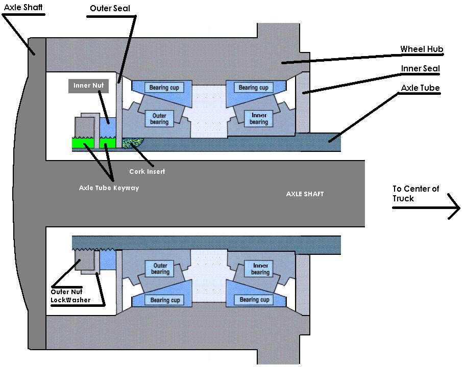 I thought a more complete cross-section of the hub would be useful to those first timers trying to understand this job. The manuals really don't illustrate how and why the insert works, and where the differential oil enters the bearing area if the insert is bad.