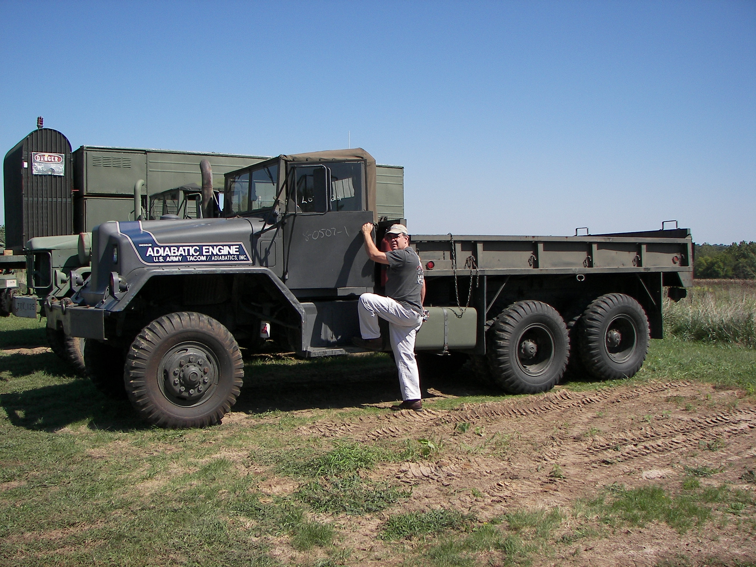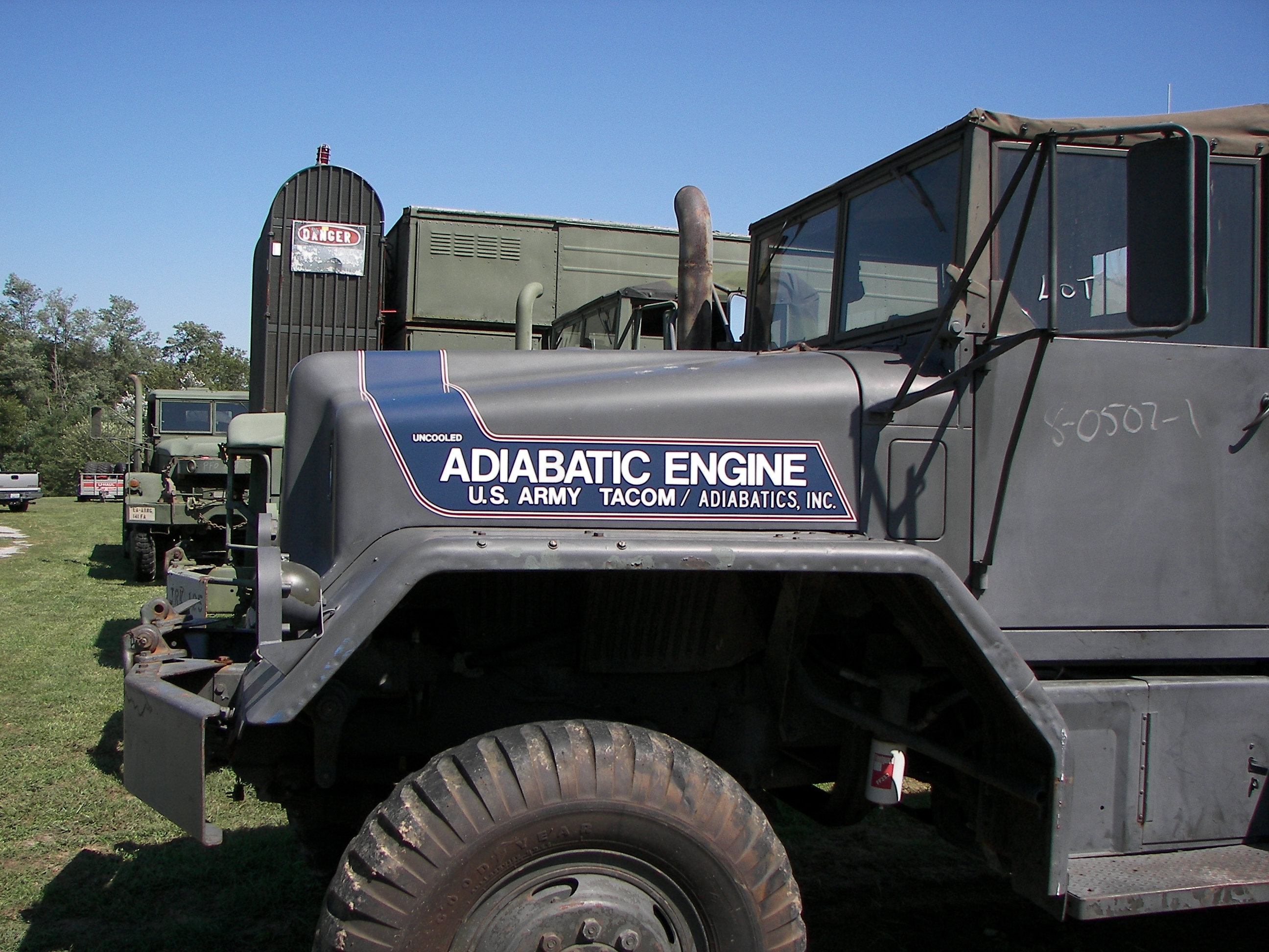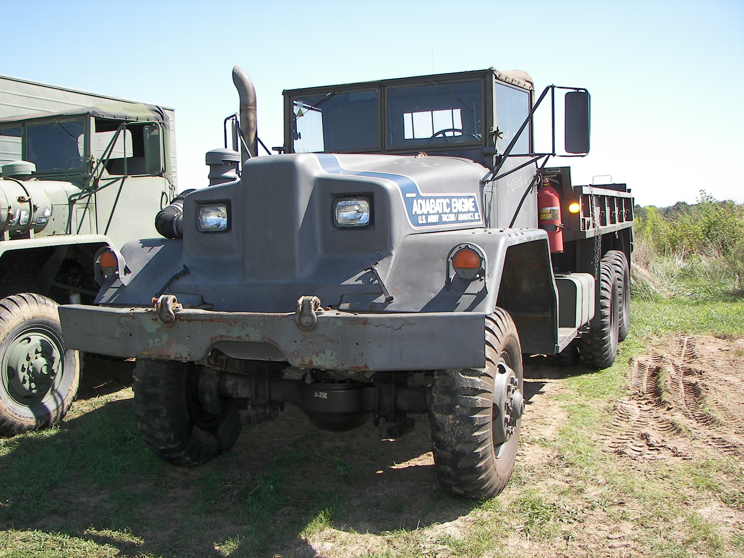 Pictures of some trucks owned by a friend in Chester, IL. Note the adiabatic engine test vehicle. This is a multifuel engine designed to not require any cooling system. All the heat pases through the engine. It has ceramic coated innards.