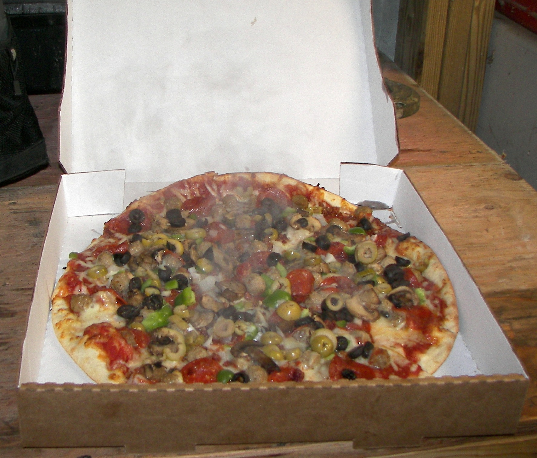 Note the steam rising from that loaded pizza! |