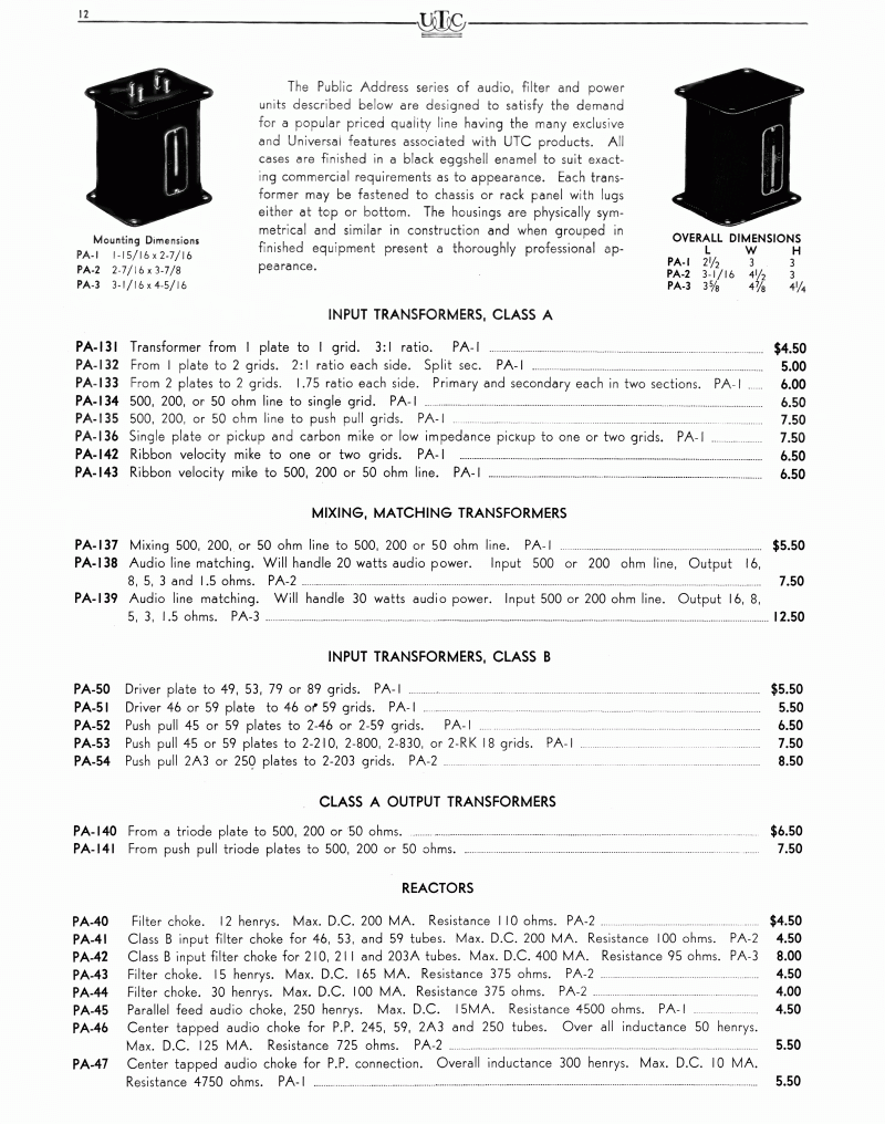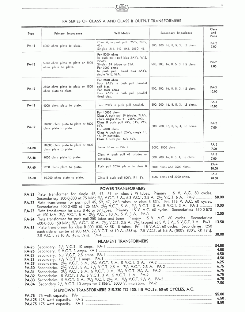 UTC PA Series Information (older)