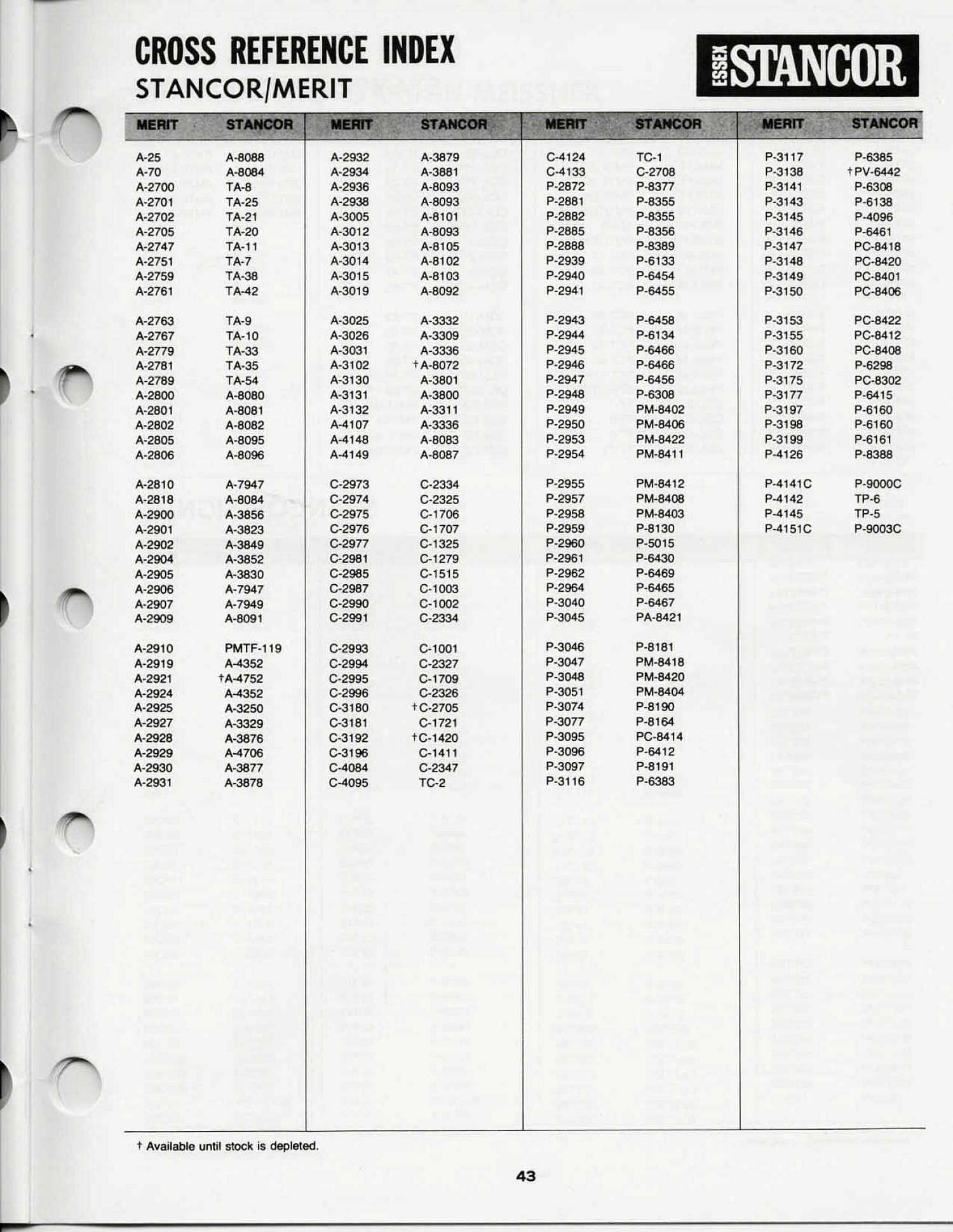 Stancor Cross Reference (selected pages)