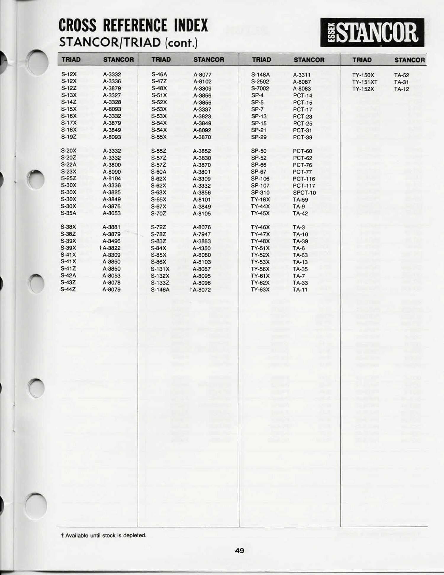 Stancor Cross Reference (selected pages)