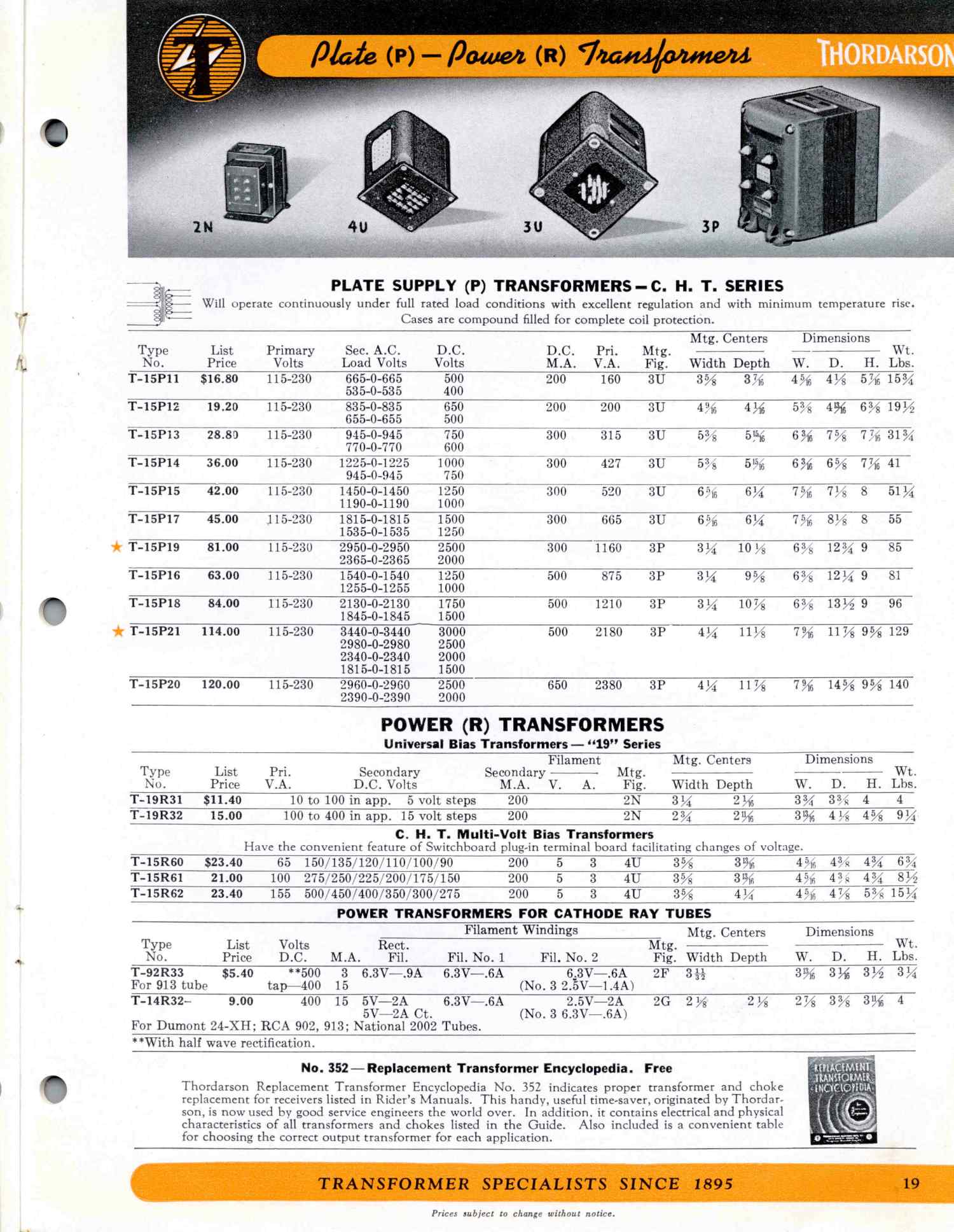 THORDARSON TRANSFORMER CATALOG 400FX, 1942
