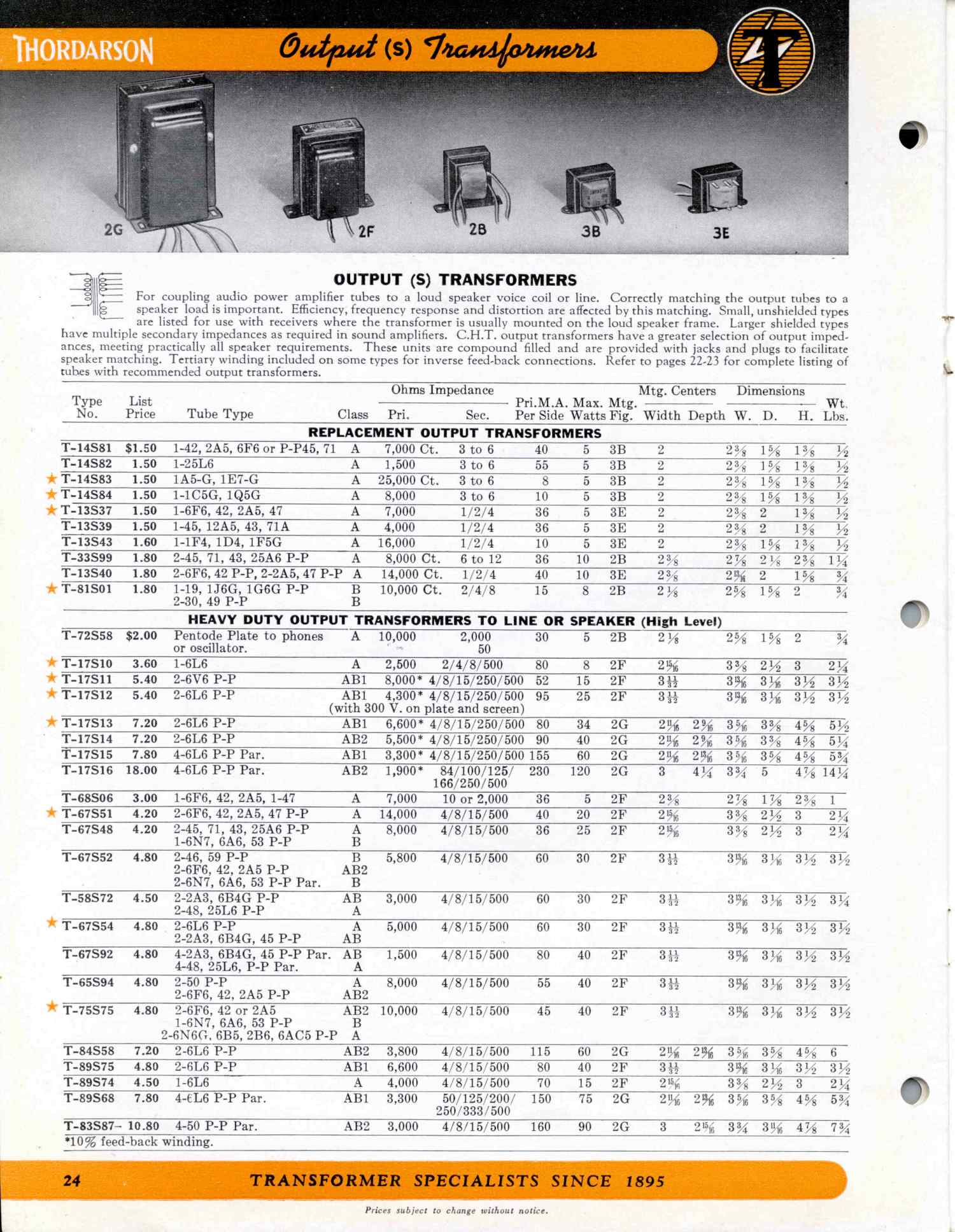 THORDARSON TRANSFORMER CATALOG 400FX, 1942
