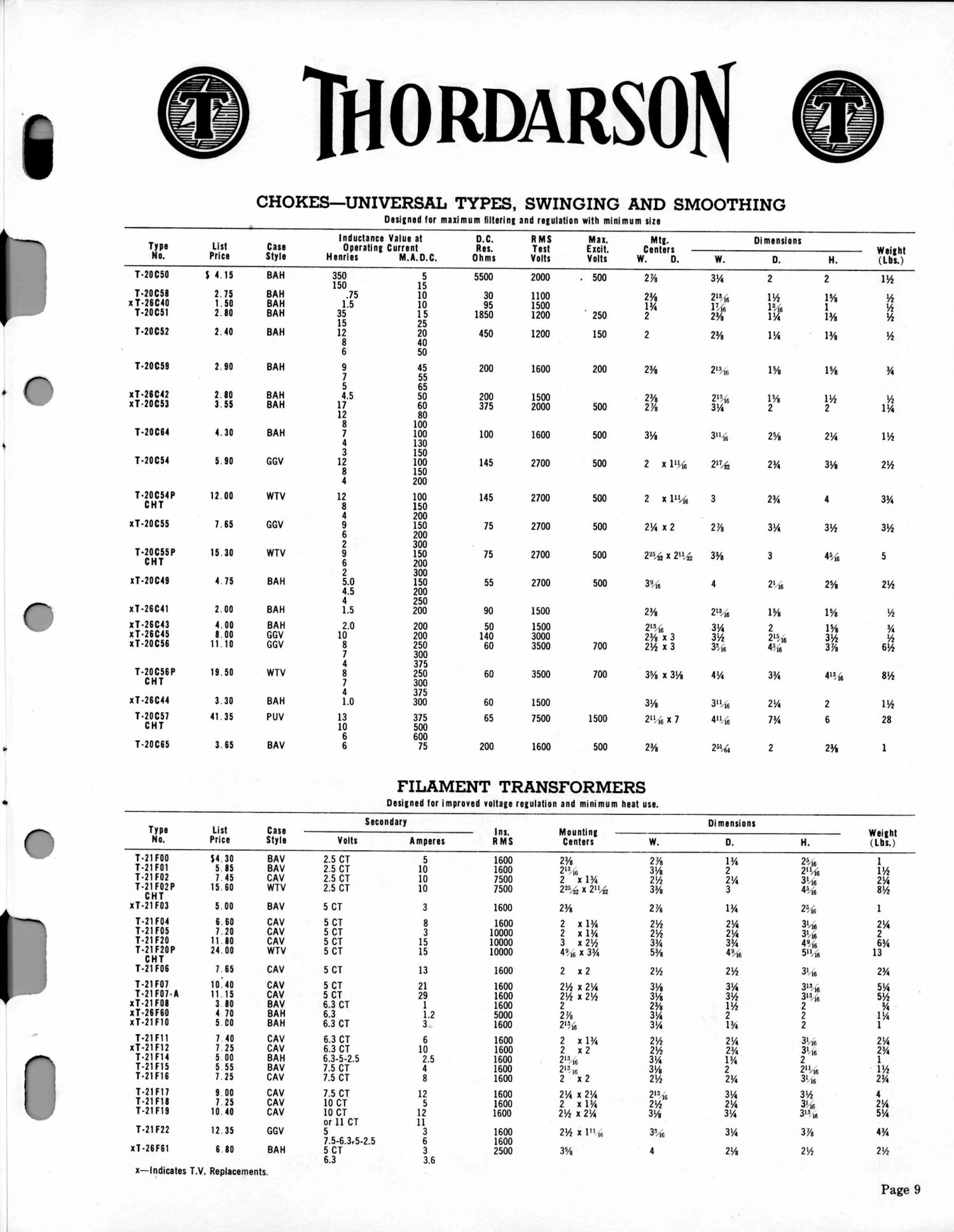 Thordarson Transformer Catalog 400K, 1952-1953