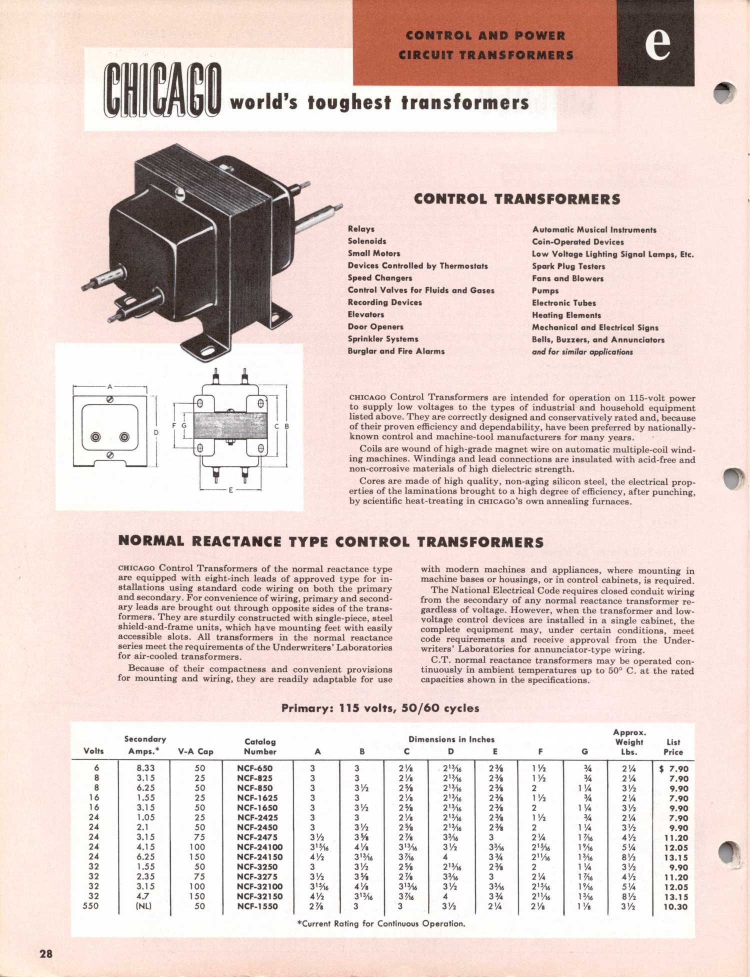 Chicago Transformer 1953 Catalog CT-153