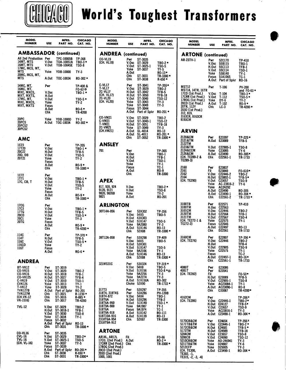 Chicago Television Transformer 1954 Catalog