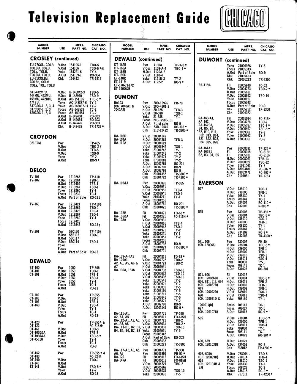 Chicago Television Transformer 1954 Catalog