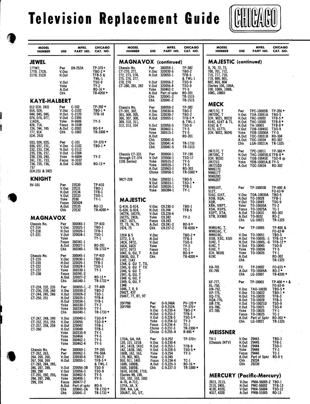 Chicago Television Transformer 1954 Catalog