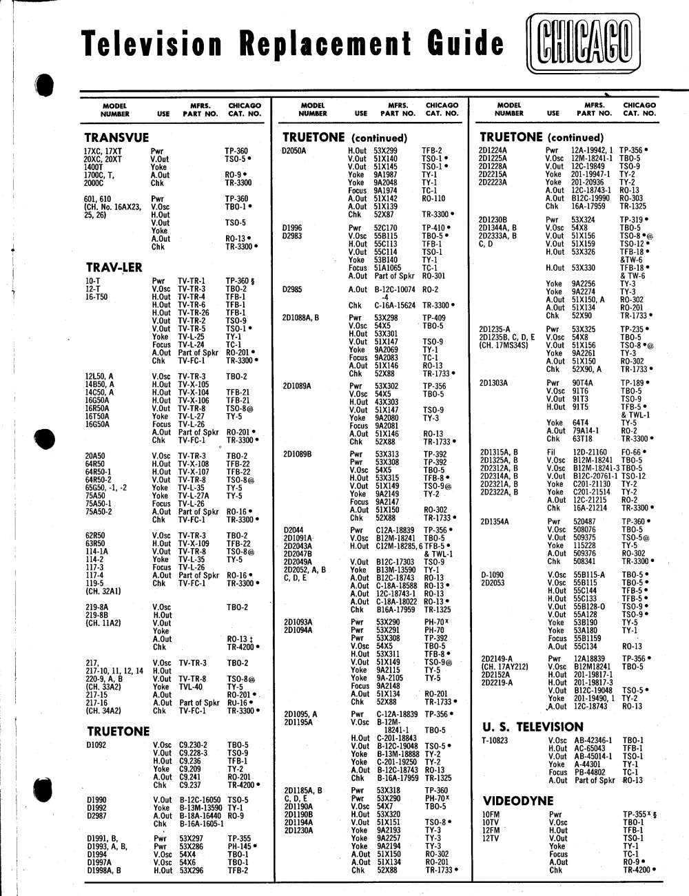 Chicago Television Transformer 1954 Catalog