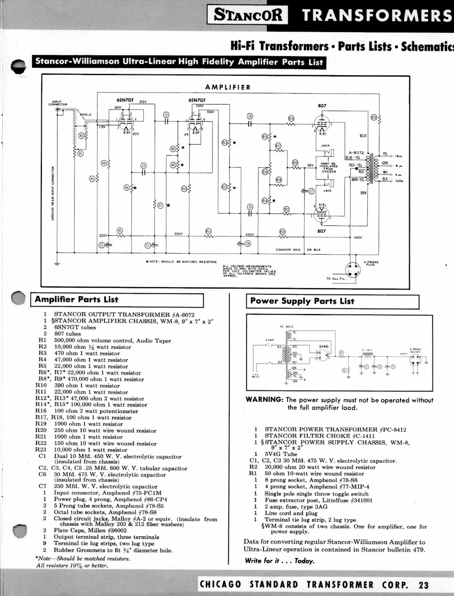Stancor Transformer Catalog S-101 (February 1955)